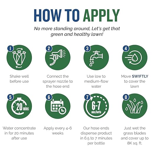 - EASY-TO-USE: Effortlessly achieve a lush green lawn with our concentrated fertilizer formula that covers 8,000 sq. ft. on all grass types. Shake well before using and connect the sprayer nozzle to your hose for Hose-End application. Unlike other brands, our product requires movement for complete coverage. Safe for family and pets when used as directed. Apply every 4-6 weeks and water lawn for 20 minutes after use. Our hose ends dispense product in 6.5 to 7 minutes per bottle.