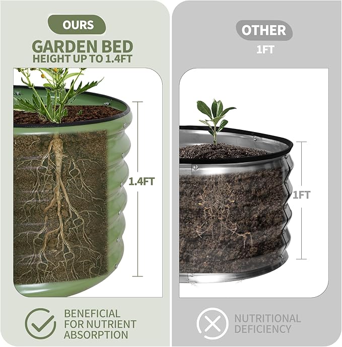- 【Upgrade Quality & Structure 】The raised garden bed is made of thick galvanized metal with a surface spray coating, which is rust proof and anti-corrosion. Can be used for a long time. The oval design ensures uniform surface force and prevents deformation. More durable than other raised planter box, becoming a good helper for your garden.