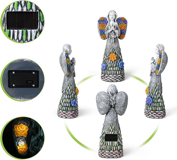 - 💎Solar Angel Statue Outdoor: The angel statues with eyes closed, holding a cross, wing emitting sparkling light and possessing divine power. she seemed to be praying.The Lord is my helper;I will not be afraid.
