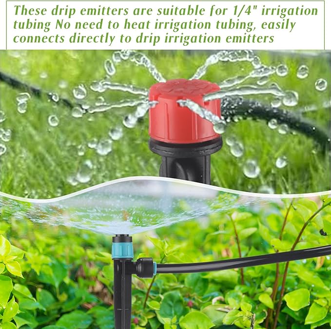 - Comprehensive Watering Kit: the package includes a robust 100 feet 1/4 drip pipe, 8 eddy drip irrigation emitters, 8 spray drip irrigation launchers, 15 tee connections, 1 universal joint and a 2 way connection; These quality components ensure optimal watering performance and versatility for various watering needs