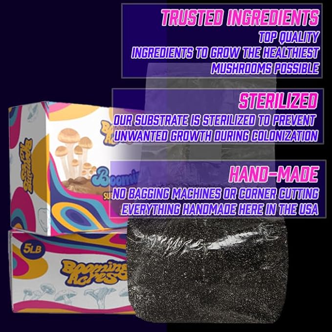 - 【 Simple Substrate Perfected】Our BOOMING Substrate is a mix of coconut coir, vermiculite, and gypsum, fortified with Azomite to provide exactly what your mushrooms need to grow BOOMING flushes!