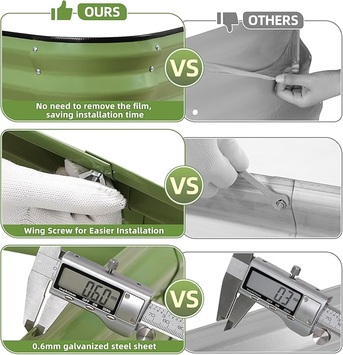 - 【 Not easy to deform】 Our oval outdoor garden box is made of 0.6 mm double-layer corrosion-resistant galvanized sheet, and the surface is coated with anti-rust coating to ensure long-term use. Equipped with optimized support rods, easy to install and flexible, durable and not easy to break, providing excellent support after soil filling.
