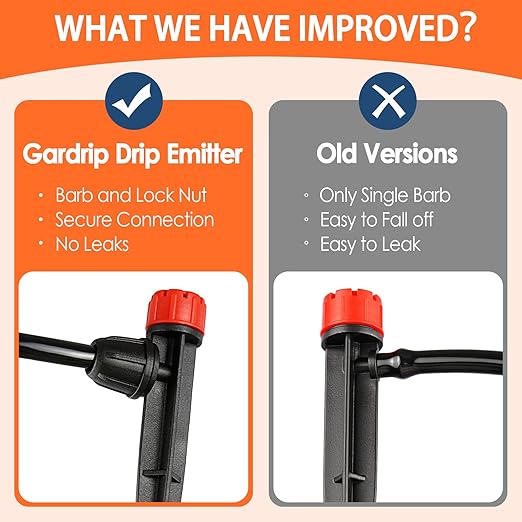 - UV-STABILIZED MATERIAL FOR LONG LIFE: Made of high quality & UV resistant plastic material,Gardrip drip irrigation emitters assure long life in the landscape. And the dripper cap are detachable and very easy to clean. Don't worry about clogging. These irrigation sprayers mounted on 5 in. stake can be easily inserted to the soil and stays fixed in loose soil.
