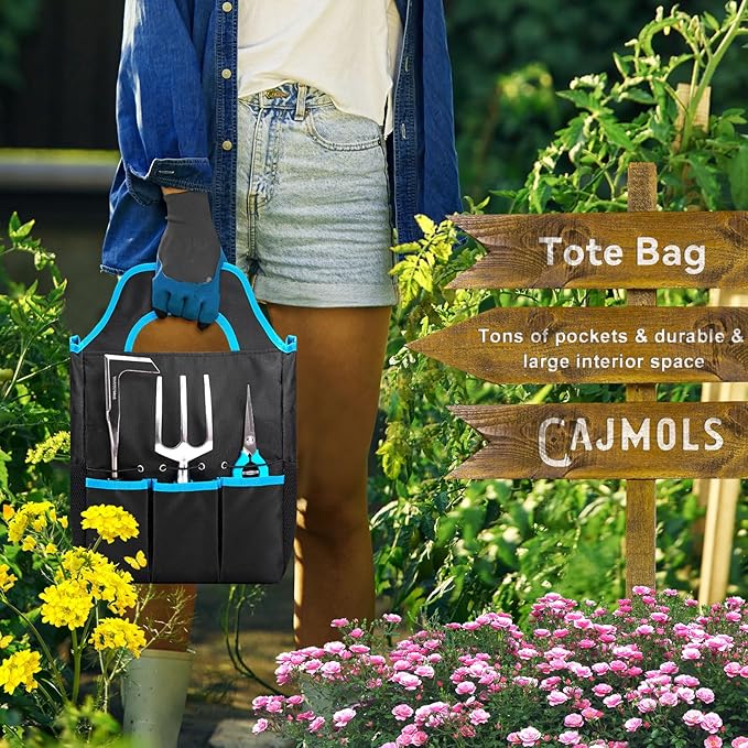 - 【𝐔𝐭𝐢𝐥𝐢𝐭𝐲 Gardening Tool Set】Our 11 Pcs garden tool kit contains all the essentials you need on daily gardening work like digging, planting, weeding, loosening, pruning, etc. You could find a pair of gloves, soil scoop, small trowel, cultivator, hand rake, pruner, weeder and an tote bag to keep all the tools packed away in our garden tools set, perfect for any gardening scene in your garden, lawn, and yard! Also suitable as a great gift for novice gardener!