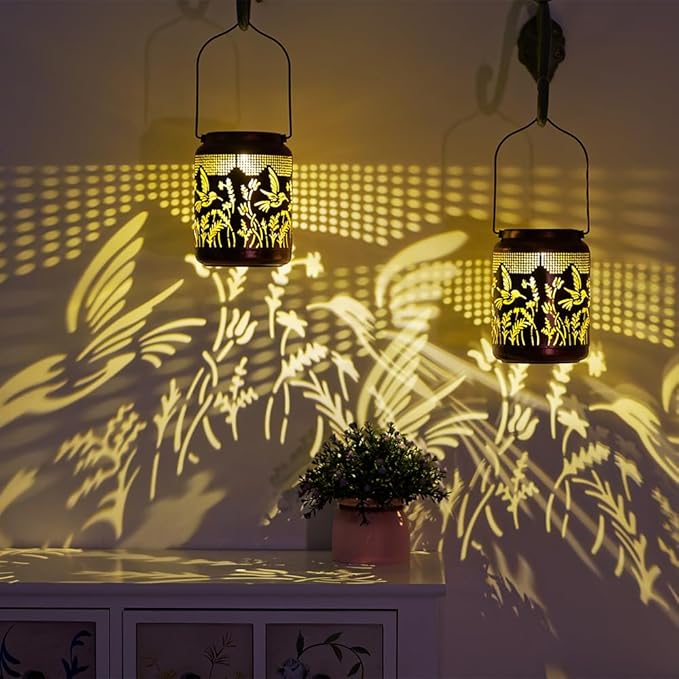 - Elegant Design: Our hummingbird solar lantern features a charming retro design with a copper coating and complex hummingbird hollow patterns,the hummingbird lanterns decorative outdoor can project exquisite patterns in dark environments and creating a unique artistic effect.Size:4.7''W x6.9''H