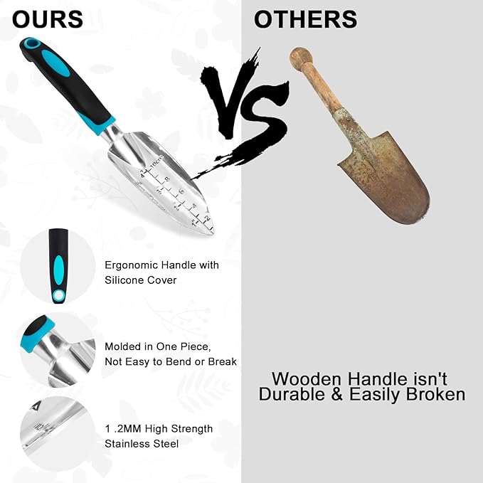 - ENHANCED GARDENING EXPERIENCE - Large repotting mat inclueded in our yard tools kit simplifies indoor gardening. It eliminates the need to bend over, allowing for comfortable transplanting from a kitchen counter. The ergonomic handles, made from high-quality TRP, provide a comfortable grip for hands of all sizes, reducing strain and effort during use.Unleash your green thumb with our garden tools and create your dream garden