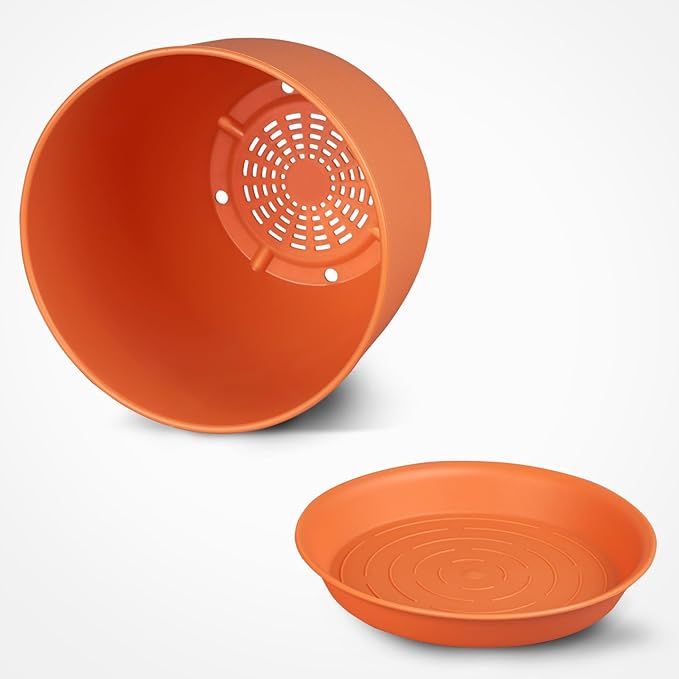 - 【Stylish Design】-These 8 inch plant pots feature a modern and stylish orange design that complements various indoor and outdoor settings. Their sleek appearance and clean lines make them an ideal choice for any garden, balcony, or indoor space.