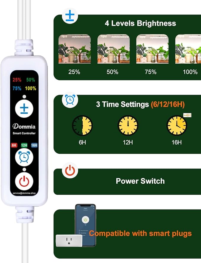 - Grow Light with Timer- This usb plant light can set the timer for 6, 12, and 16 hours to ensure your plants receive adequate lighting even when you're busy. The plant light with timer will be auto on/off every day to replicate your plants' growth in a natural environment with the grow lamp powered on. This smart grow light is compatible with smart plugs, to effortlessly care for your house plants and maintain their health and vitality.