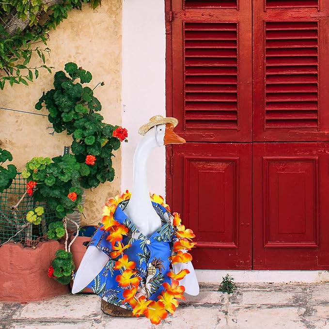 Goose Outfit Yard Porch Goose Clothes Silly Lawn Shirt for 23'' Cement Duck Decorations(Summer)