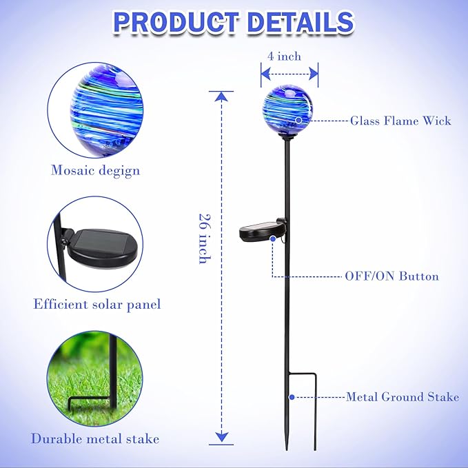 Solar Outdoor Decorative Lights Color Swirl Solar Garden Stake Glaze Glass LED Solar Garden Globe Lights Outdoor Decorative Lights for Pathway Yard Lawn Decoration 2 Pack Blue&Green