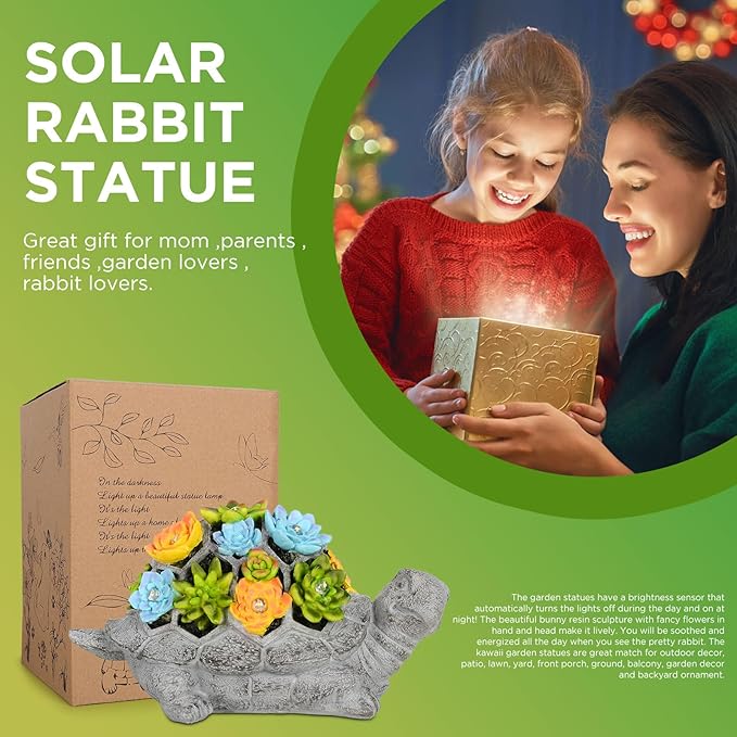 - 🐢【Unique Gifts Choice】The Turtle solar garden statue comes in his own beautifully designed box. A perfect choice as a gift for Mom/Grandma/Wife/Daughter/Sister/Aunt/Grandma,girlfriend/boyfriend, wife's wedding anniversary, child's birthday,mother's birthday, or Mother's Day, Father's Day,Thanksgiving Day,Valentine's Day and Christmas