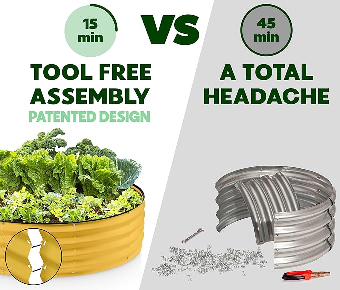 - EFFORTLESS ASSEMBLY, LIKE NO OTHER! Begin your planting journey by choosing our innovative patented design, featuring the perfect combination of easy assembly and durability. Thanks to our unique tool-free design, assembly is a breeze and can be completed in just 15 minutes! Get started on your garden right away and enjoy fresh, healthy produce in no time.