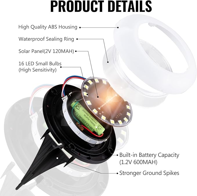 - EFFICIENT SOLAR GARDEN LIGHTS - Each solar lights has 16 LEDs. Illuminate your outdoor spaces with our outdoor circular ground lights. Designed to charge during the day and automatically illuminate at night, these lights provide efficient and eco-friendly lighting for your pathway, garden, patio, yard, walkway, deck, driveway, lawn, and more.