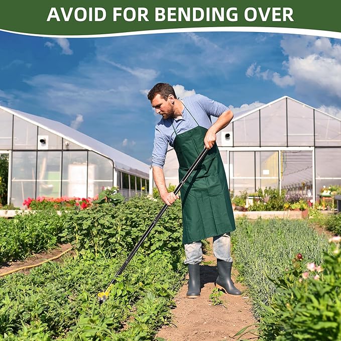 - 【Garden Hoes for Weeding Long Handle】Hula hoe feature adjustable long handle, with 4 sections which can be adjusted to 30",45" and 60".Our garden hoe can change the length to suit your height and it can provide maximum comfort for tall gardeners,less bend over and reduce the burden on your back and knees
