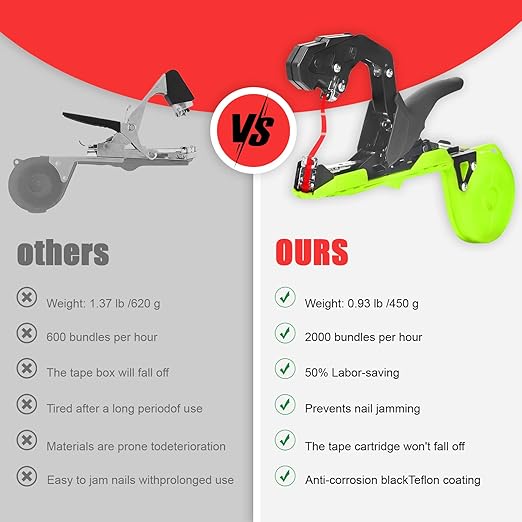 - (Product Highlight): By using our plant binding tool and green tape to secure plant stems to supports, our tape tool will keep your plants growing upright and reduce the risk of wind damage. This helps keep plants healthy and ensures a successful harvest.