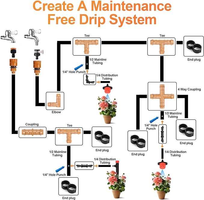 - 【High Impact Drip Irrigation Coupling Parts】:Constructed of highly durable UV resistant materials, this 1/2 inch drip irrigation parts guarantee extended operation in harsh conditions. One-piece construction for added strength and durability for long-term performance.