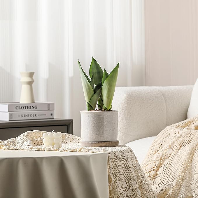 - 6-inch Planter Pot: This pot is 6 inches in diameter and 5.6 inches high, with an elegant shape