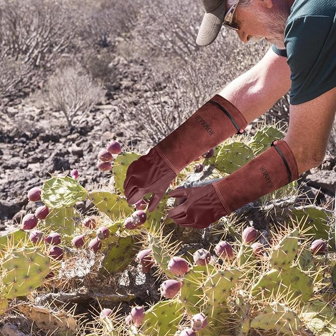 - FULL PROTECTION LEATHER GARDEN GLOVES: This palm part is made of full grain cowhide for wear resisting, suit for doing various chores in your yard. Elbow-length gauntlet will offer protection all the way until your elbow. Extended cowhide leather cuff protects forearms from cuts and scratches, long pruning gloves allowing you free from your roses painlessly and has good anti-bite effect.Our rose pruning gloves are thorn and scratch resistant.