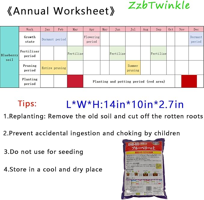 - PROFESSIONALISM - Premium granular soil mix made by Japanese professionals, excellent drainage and root growth environment, targeted to provide more comprehensive growing conditions for blueberry trees