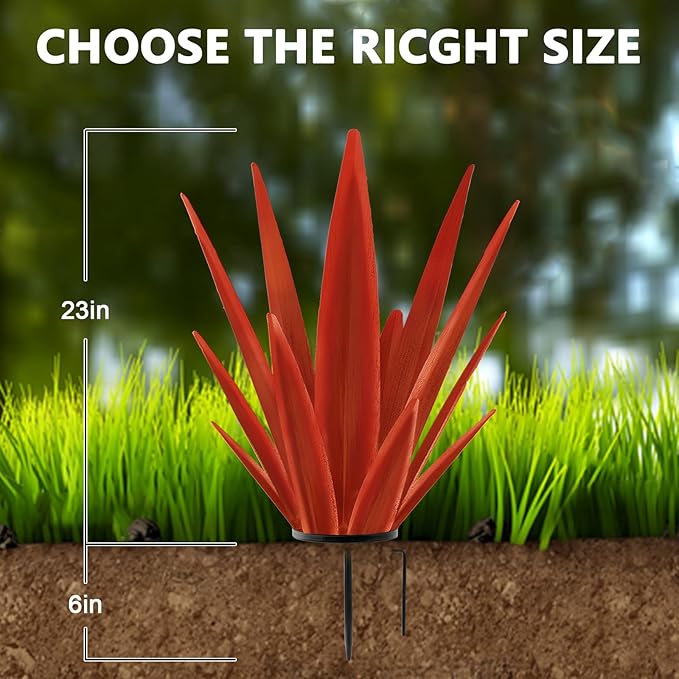 Enlarge Metal Plants Tequila Rustic Sculpture, Outdoor Patio Yard, Home Decor Hand Painted Agave Garden Statue, Outdoor Lawn Ornaments Yard Stakes for Mom Gift (1 RED Large)