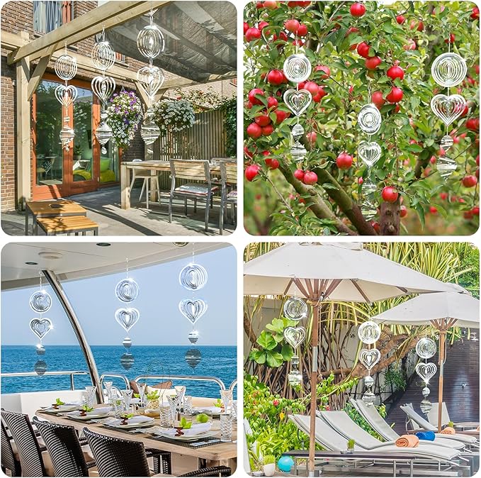 Bird Deterrents for Outside, Reflective 3D Stainless Steel Wind Spinners, Garden Decor, Bird Scare Devices to Keep Woodpeckers, Pigeons Away from Your House, Patio, Orchards
