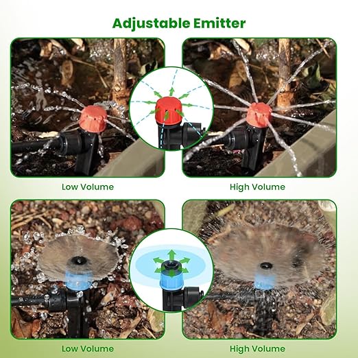 - Efficient Water Distribution Setup: By delivering water directly to the roots of plants, these kits minimize water wastage through evaporation, runoff, and overspray associated with traditional watering methods like sprinklers. You can adjust the emitters to ensure that only the necessary amount of water reaches each plant, preventing excess usage and reducing water bills.