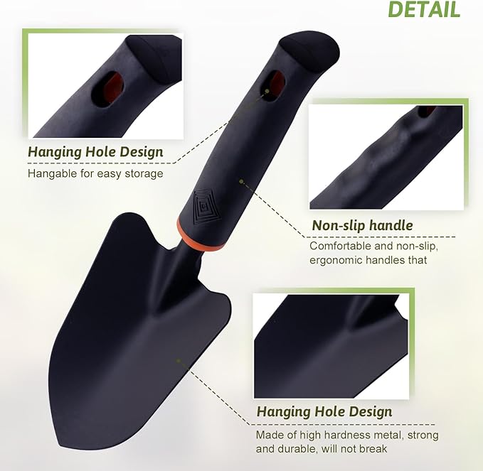 - Gardening Supplies: Garden tool kit can meet all your indoor and outdoor needs for daily garden maintenance. Such as digging, Weeding, Loosening soil, Aeration, Transplanting, etc