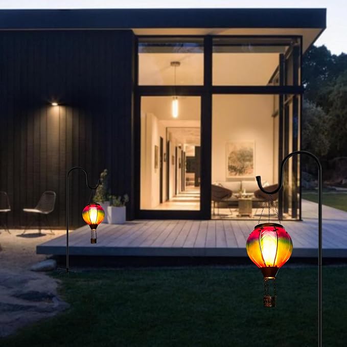 - 【Solar-Powered】Outdoor solar lanterns absorb sunlight during the day and automatically light up at night, providing 6-8 hours of lighting. The soft and warm light of hot air balloon solar lantern creates a romantic and peaceful atmosphere for the outdoor space.