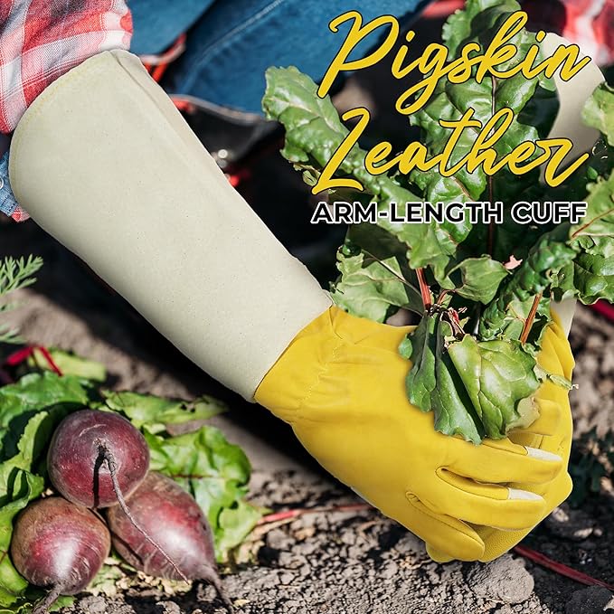 - Soft & Puncture Resistant: This gauntlet gardening glove is ideal for: trimming roses, pruning holly bushes, berry bushes and other prickly shrubs, tending to cactus plants.