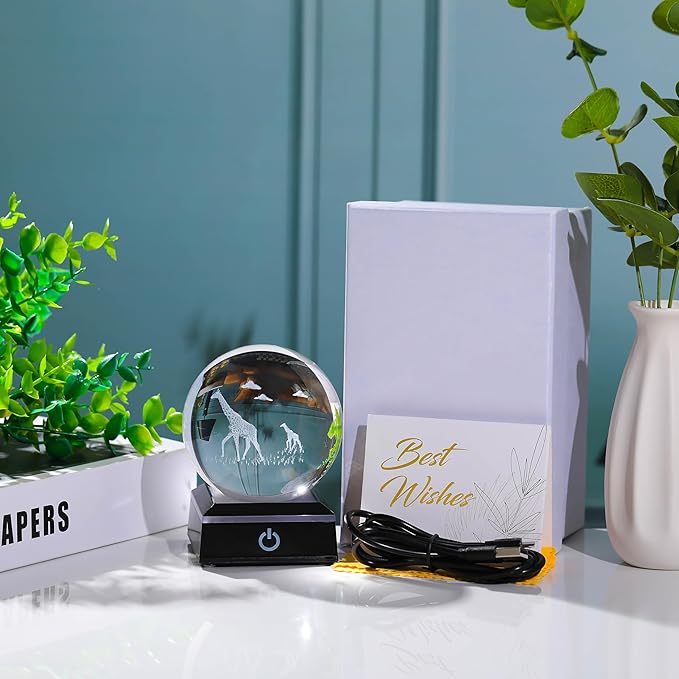 - 🍀Crystal Ball Giraffe Gifts - Crystal Glass Giraffe Figurine Decor size: 3.14". Made of HIGH-QUALITY K9 Crystal, Interior images are carved by Advanced 3D Laser Engraving Technology, nice Giraffe Gifts for mom on XMAS Mothers Day