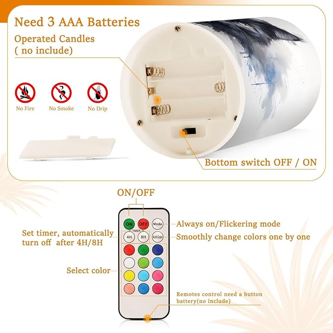- Convenient Remote Functions: Includes an 18-key remote controller with a timer. You can control these candles remotely when they are placed somewhere difficult to touch. Set 4H/8H timers will save you trouble turning them on/off, they will come back on automatically at the same time every day. Also, you can adjust the light color as you want