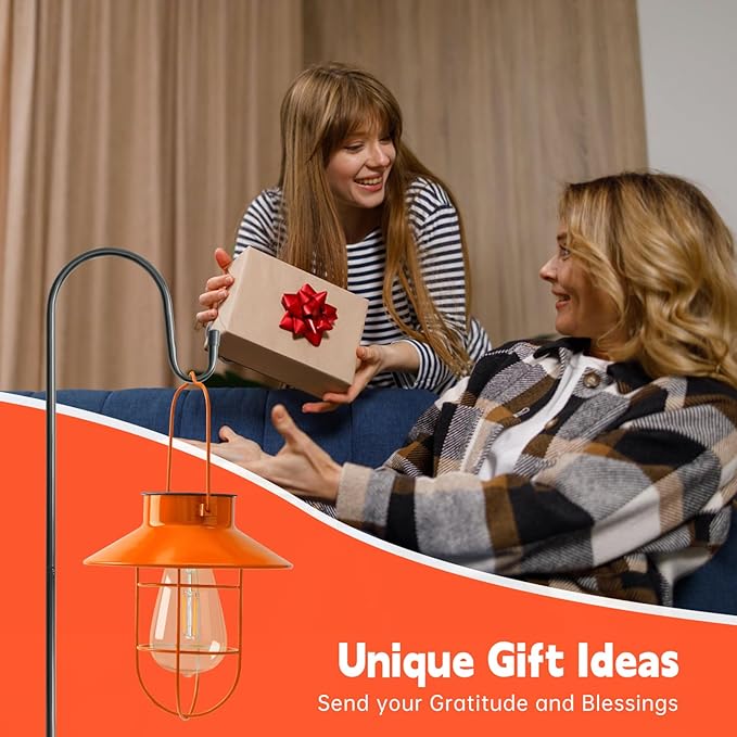 Solar Lights Lantern Lamp with Shepherd Hook, Solar Metal Lanterns, Outdoor Lights Decor,Edison Bulb Lights for Garden ,Outside Decor for Pathways,Patio, Lawn, or Landscaping (Orang)