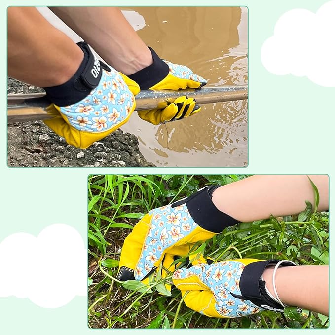 - Crafted for Durability: This gardening glove is made of carefully selected grain cowhide to ensure abrasion resistance, which is not only thick but also soft and flexible with moderate oil resistance, puncture resistance and cut resistance. The back of the hand is made of elastic, breathable and sweat-absorbing material, which can keep our hands dry and easily complete all works in the garden.