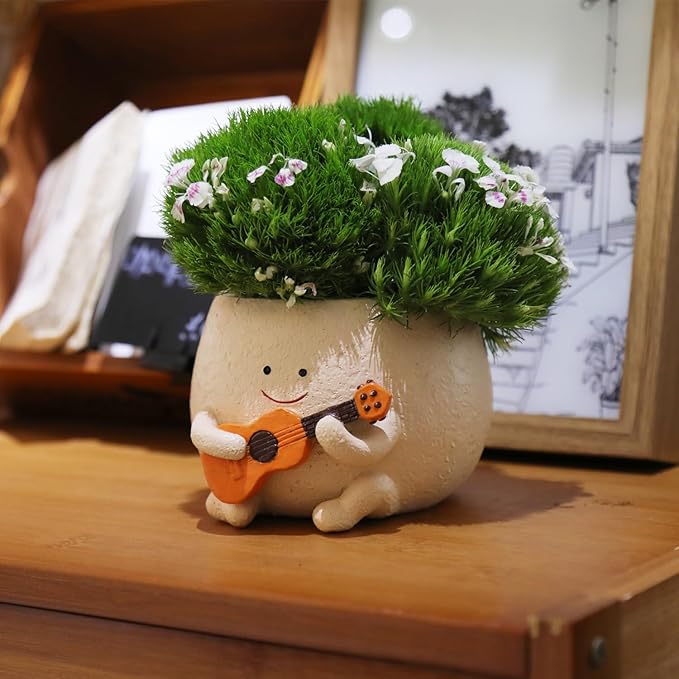 - Cheerful Guitar Boy Design: Elevate your surroundings with the funny guitar planter. Brings whimsy to gardens, patios, and tabletops, creating a joyful atmosphere.