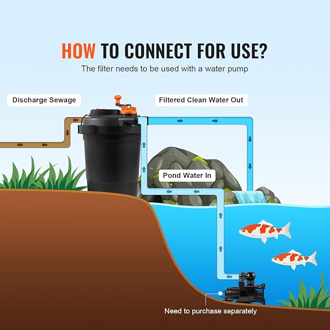 - Fast Purification in 3-7 Days: Our bio pressure pond filter works at a stellar flow-through rate of 2630 GPH (10000 L/H), ideally purifying decorative ponds up to 3200 gallons and fish ponds up to 1600 gallons. Remember, for optimal performance, simply connect to a pump!