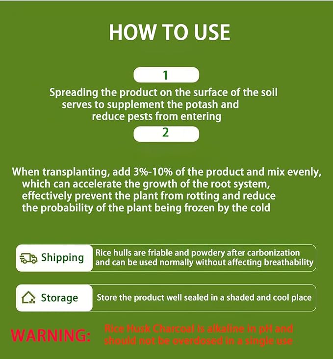 - Increases soil carbon content, provides essential phosphorus and potassium for plants, retains water,regulates soil pH,improve soil breathability,promotes flowering and fruiting
