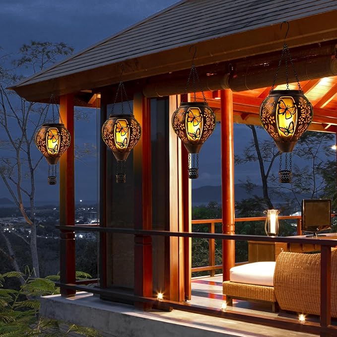 Hot Air Balloon Solar Lantern Outdoor - Flame Hanging Solar Light Waterproof Lanterns for Patio Garden Yard Farmhouse Decor, Great Gift(Butterfly)