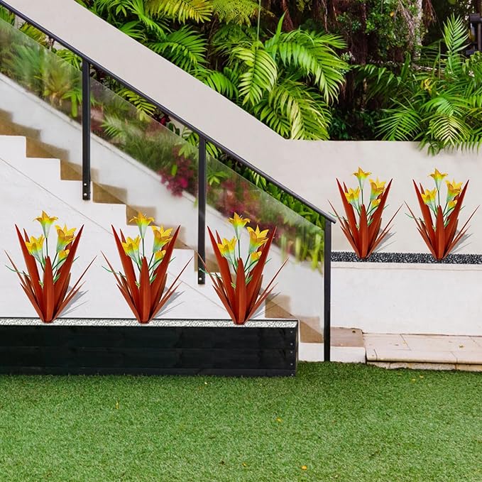 - 【 Easy to install 】 The metal agave is 16 inches tall, with nice lily flowers in the middle, and comes with a ground insert for more firm resting on the ground. Just place it anywhere you want, garden, yard, patio. It can be placed on the ground, on the patio, and used as a planter
