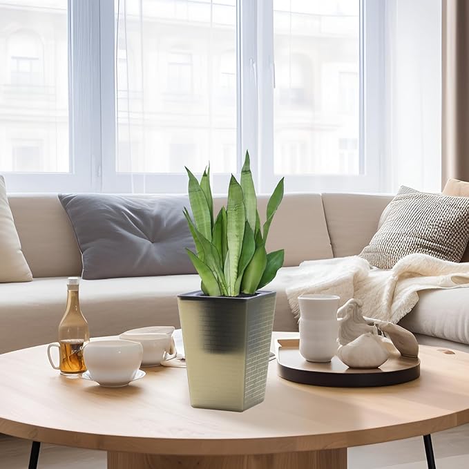 Self Watering Planter 4 Pieces 6 Inch, Plastic Flower Pots with Inner Pot Indoor Plants Brick Pattern Flowerpot for Indoor Plants, African Violets, Flowers, Herbs