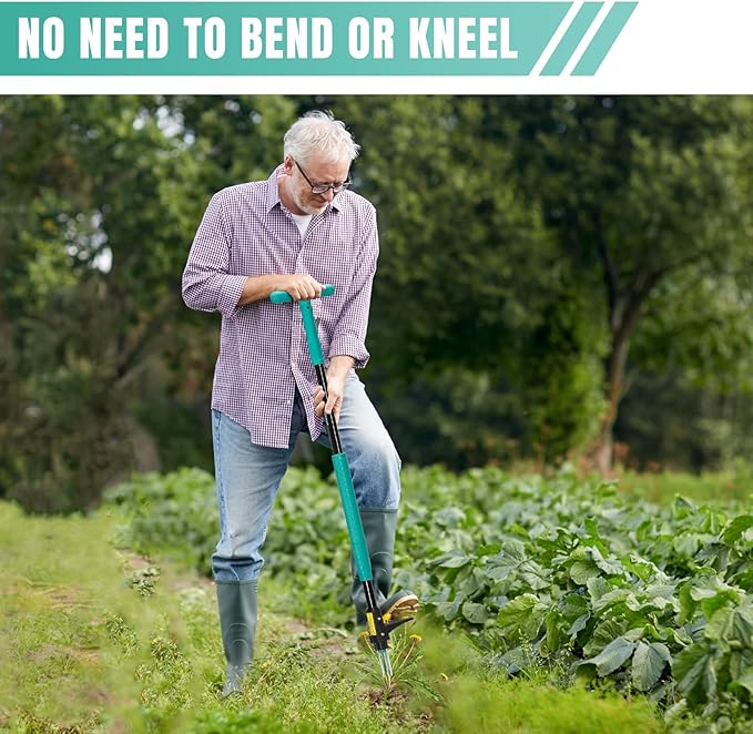 - 【Efficient and Eco-Friendly】:Unlike other weed remover tool, our weed puller tool stand up heavy duty saves labor by withdraw the need to bend or kneel while in use. You can effortlessly remove weeds while standing, protecting your waist and knees. Moreover, our weed tool remover reduces reliance on costly and harsh herbicides, offering a faster, simpler, and greener approach to weed removal while promoting environmental friendliness.
