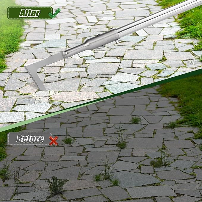 - 🌿【New Upgraded Crack Weed Remover Tool】Consisting of carbon steel blade and stainless steel long handle, light and effortless, sturdy and not bend or break, suitable for long-term use. With L-shaped head design, this weed puller tool can be easily inserted into tight cracks to remove moss/weeds, including sand/soil used to block weeds!