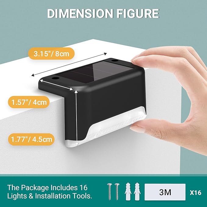 - 【Automatic Work Mode】The solar stair light has no switch, just pull out the insulator tab to use. On sunny days, it takes only 4-5 hours to be fully charged. It can turn on automatically at dusk and turn off at dawn.