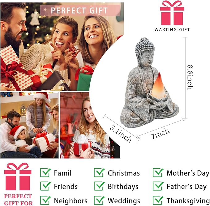 Buddha Statue for Home and Outdoor Decor Solar Powered Flickering LED,Garden Light Zen Meditation Spiritual Room Decor- Buddha Decor Outdoor-Ideas Gifts for Women, Mom