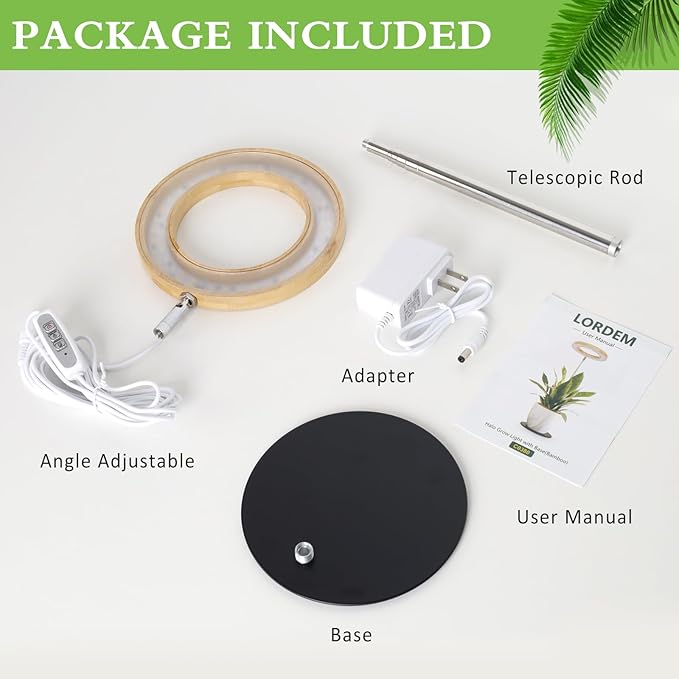 - Easy to Assemble & Use: No tools required! Simply screw the telescopic pole into the metal base, attach the bamboo halo lamp head to the pole, plug in the plant light, and start using it immediately. Lightweight yet durable, this plant grow light is the perfect hassle-free solution for nurturing your indoor plants or kick-starting your seed starters.
