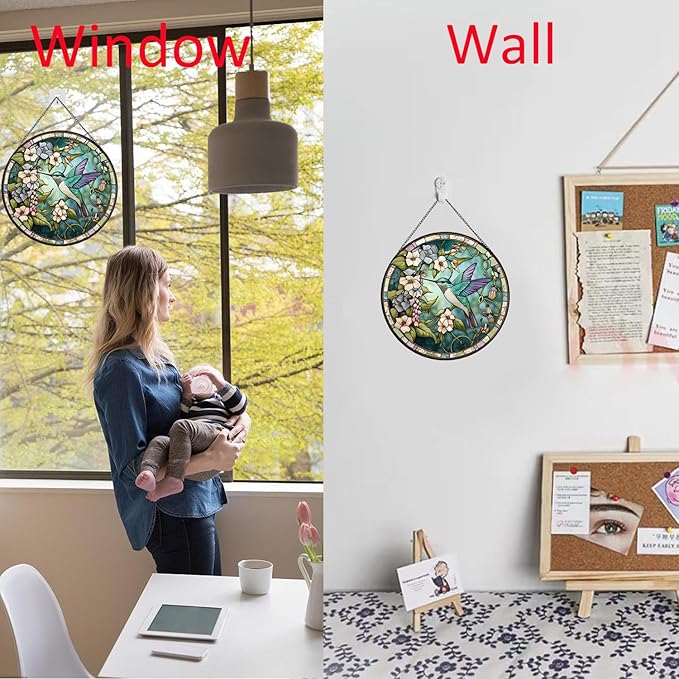 - 【Great Home Decor】This stained glass window hanging painted a hummingbirds and flowers, vivid and full of vitality. Ideal for those who love pastoral and nature, and seek a return to original nature! You can hang it in the position you want to decorate,it's a great home decor.