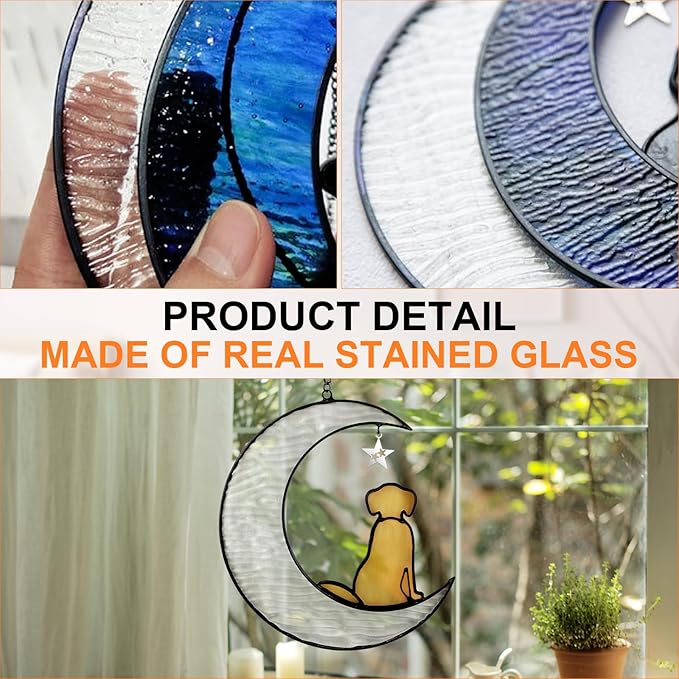 - 🐾【Real Stained Glass NOT Acrylic】Handmade Stained Glass dog memorial gifts is real glass not acrylic as many suncatchers are.The colors are nice and bright and the details are pretty,which is color-fast. It is a good choice for home decoration,whether hanging on the window or the wall.All items are designed by ourselves that got copyright protection already.