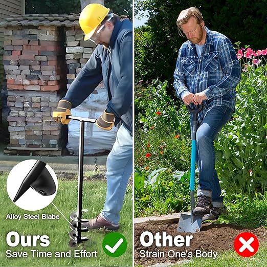 - Versatile Applications: Perfect for planting bulbs, trees, flowers, seedlings, and more, this auger works efficiently in various soil types, including soft soil and sand. It's also ideal for installing fence posts, umbrella holes, and other gardening projects