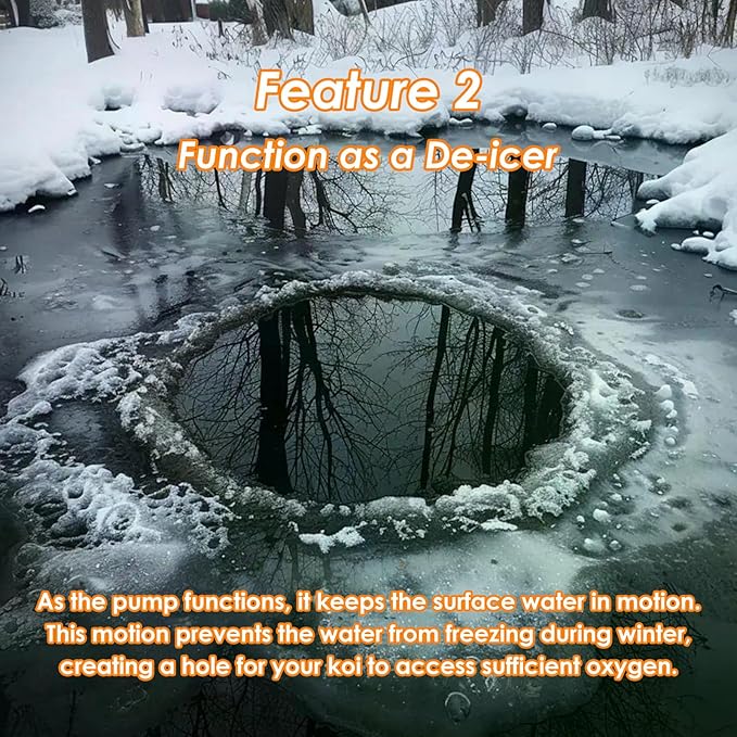 - MULTIFUNCTIONAL - In addition to functioning as a pond bubbler, this pump also operates as a pond deicer in the cold winter months, ensuring your koi have a ventilation hole for breathing!