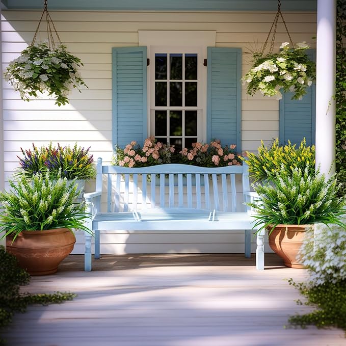 - [Designed for Outdoors] Outdoor artificial flower plants versatile decorations, whether you want to enhance your garden, porch, window box, or even use them as a wedding or farmhouse decoration, these artificial flowers can be easily arranged and provide an amazing focus, the perfect decoration for both interior and exterior.