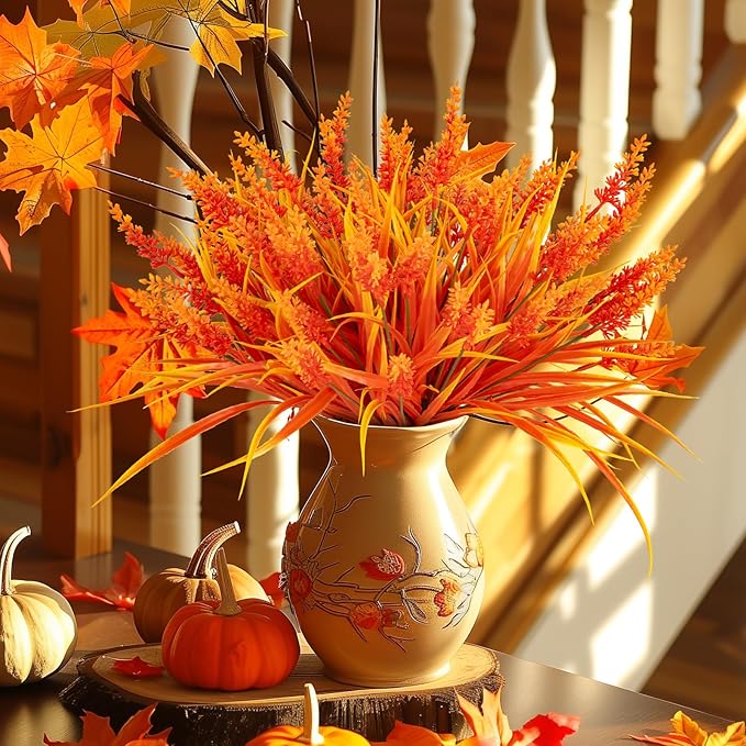 - [Natural and Realistic]Artificial Fall flowers and green ferns will brighten your life.This package includes 24 bundles of artificial flower plants,there are seven stems and seven flowers in a bundle.